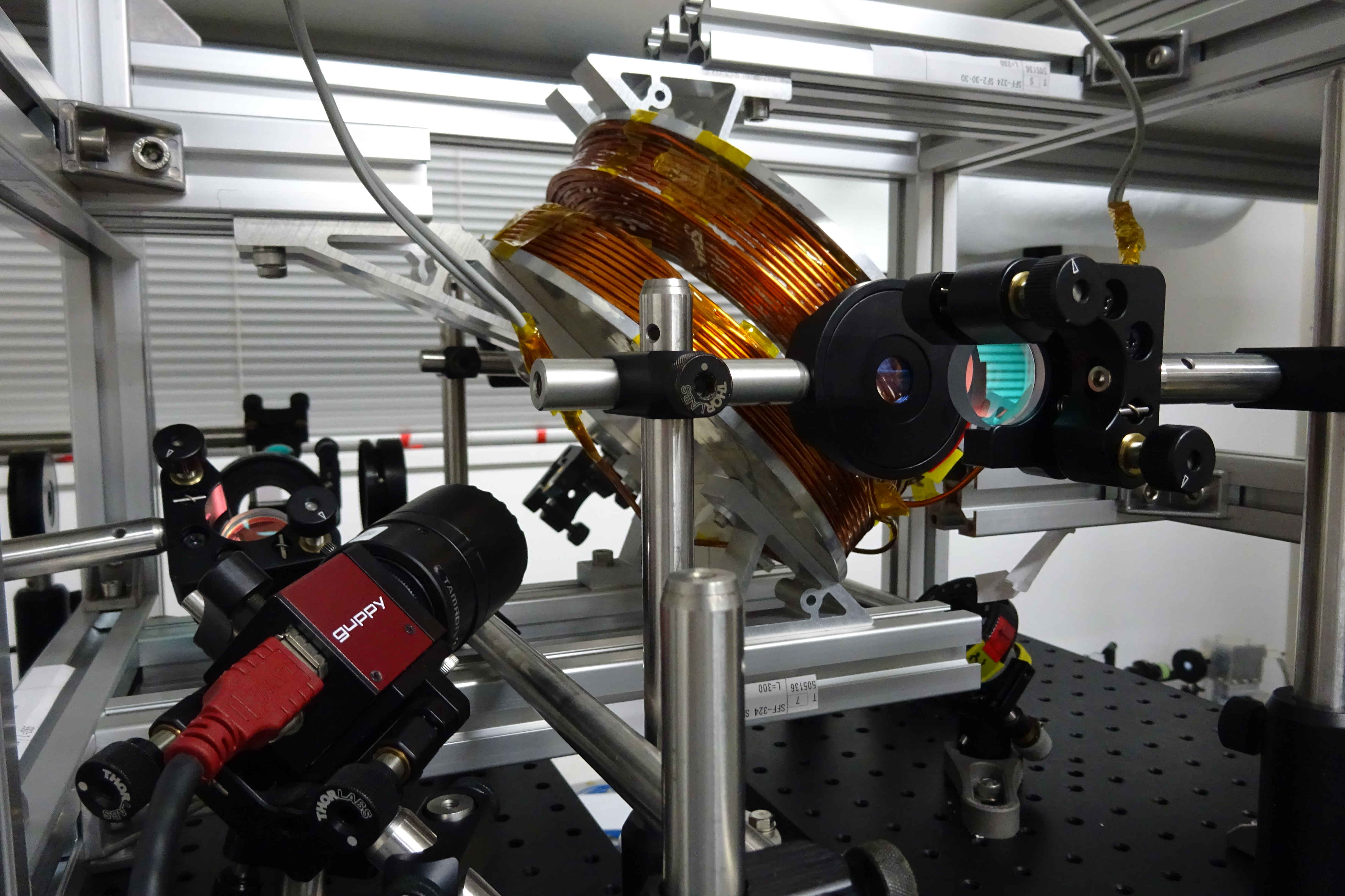 私たちBEC班はそんなレーザー冷却を用いて、気体のルビジウム原子の冷却に挑戦しました。磁石の力も借りて、ルビジウムを絶対零度から約0.0001°Cのところまで冷却しました。BECにはまだ届きませんが、それでも想像を絶する温度です。BECやレーザー冷却のより詳しい説明に加え、極低温まで冷やされた原子の動画や写真も用意していますので、ぜひお越しください。